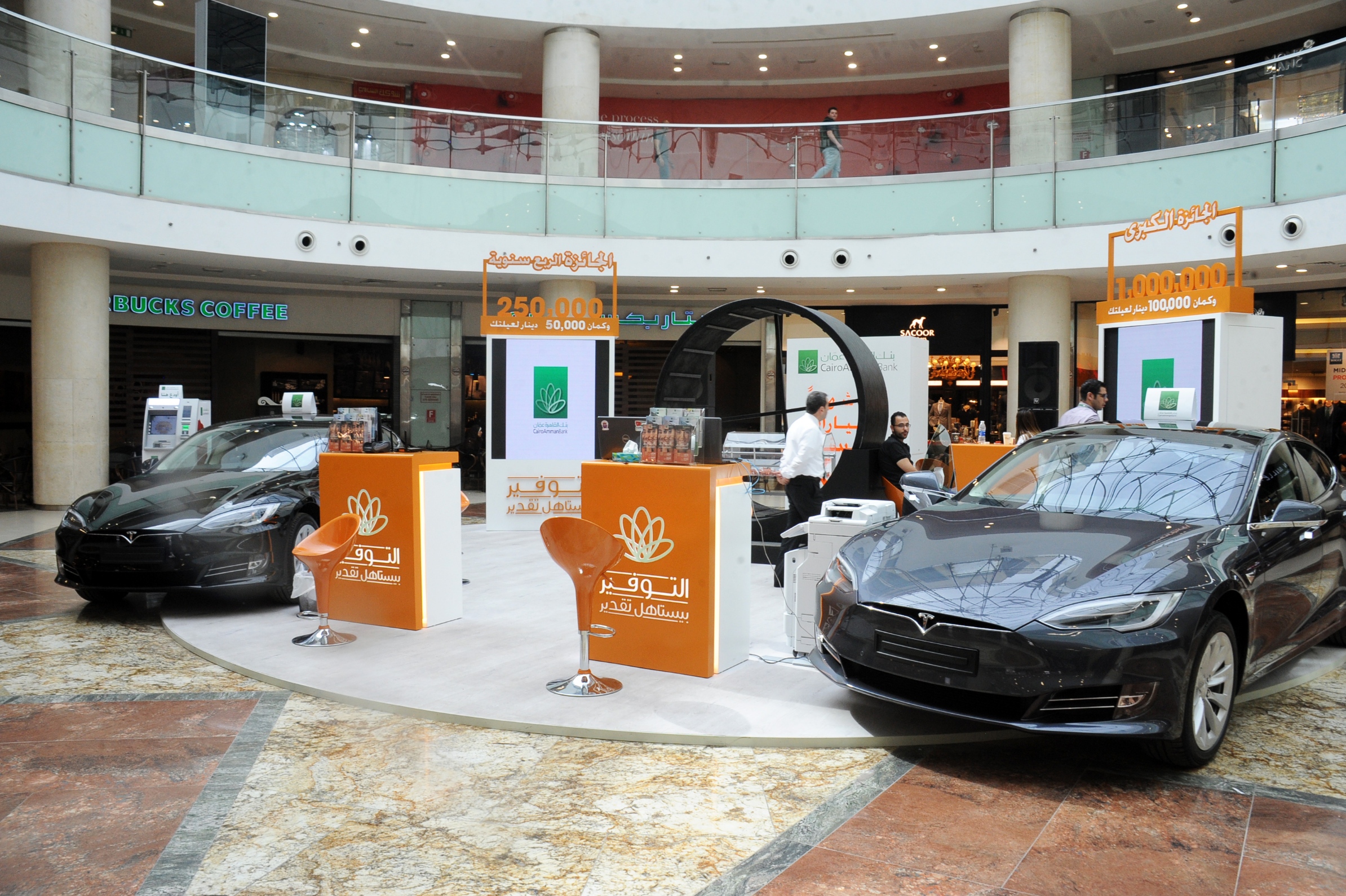 ويعرض البنك من خلال جناحه في تاج مول لسيارات " تيسلا " التي خصصها للجائزة الشهرية وعدد من الفعاليات والمسابقات التي تتخللها توزيع جوائز " حسابات توفير " على المشاركين.