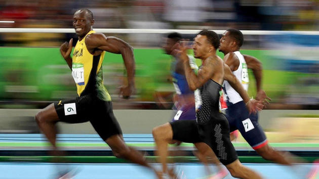 ولامتاع الجماهير والمصورين، قام بولت بحركته الشهيرة خلال احتفاله بكل انتصار عن طريق ايمائه البرق بيديه.